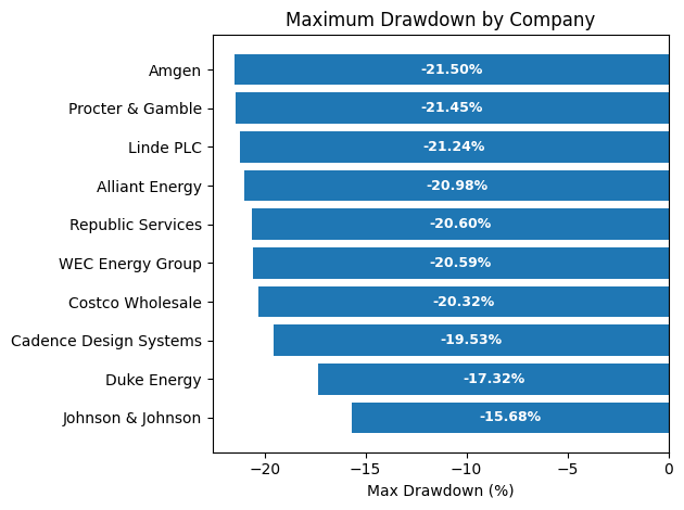 Top 10 S&P 500 Stocks by Lowest Max Drawdown (2016–2026)