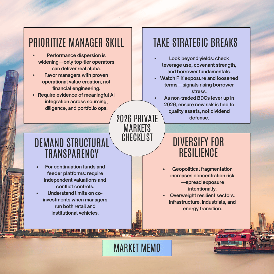 The winners will be investors who rigorously evaluate manager capabilities, particularly around operational transformation and AI integration, while maintaining disciplined skepticism about yield, leverage, and structural complexity.